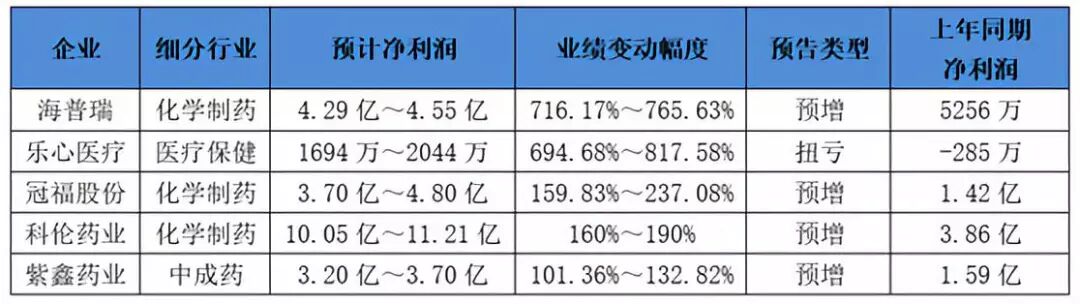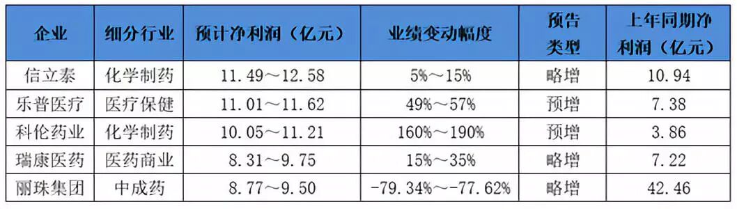 ▍5家药企净赚超8亿,5家药企增长超1倍