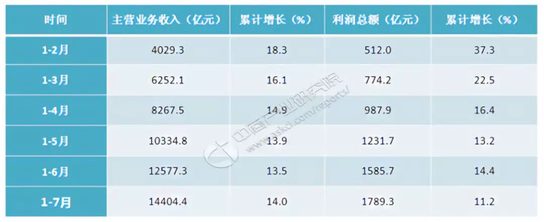 2018年1-7月,我国医药行业主营业务收入达14404.4亿元,累计同比增长14%,比1-6月上升了0.5个百分点,行业实现利润总额达1789.3亿元,累计同比增长11.2%,比1-6月下降了3.2个百分点。