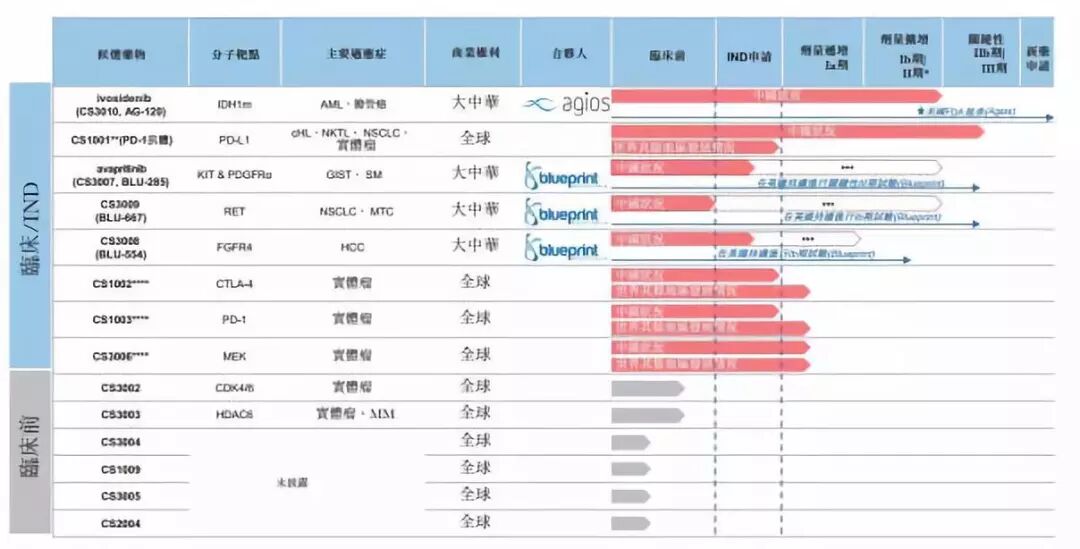 从管线上看,基石药业共有14种在研药物,包括8款正处于临床阶段,6款处于临床前研究阶段。其中进入注册性临床试验阶段的产品有4款是从国外授权引进,基石药业具有它们在大中华区的的临床开发与商业化权益。