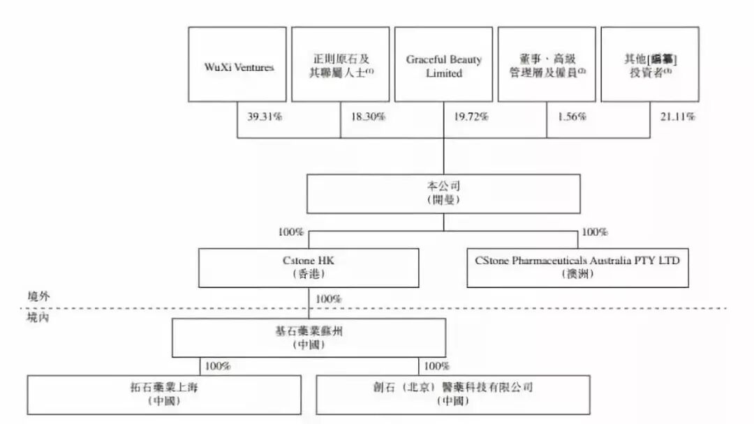 招股书同时披露,WuXi Ventures是基石药业唯一原始股东。除WuXi Ventures之外,总部设立于美国的临床前阶段公司Life Mine和主攻IT资讯及服务行业的医疗服务供应商PICA Health拥有控股权益。主要股东还包括博裕资本、正则原石等。