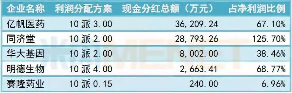 2018年上半年超过80家A股企业推出现金分红方案,其中,医药企业有5家,维生素龙头之一的亿帆医药最多,达3.62亿元,其次是同济堂2.88亿元,华大基因8002万元。