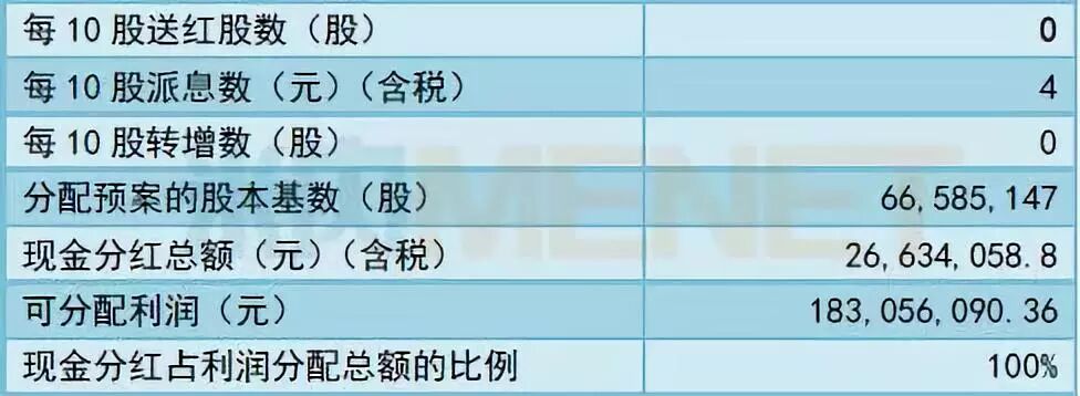 据明德生物2018年中报显示,以公司总股本66,585,147股为基数,向全体股东每10股派发现金红利4.00元(含税),合计派发现金红利2,663.41万元(含税),占净利润比例近7成。