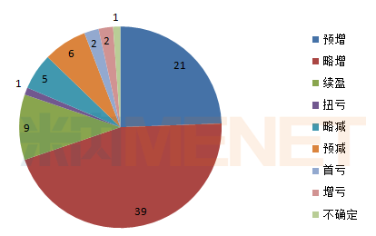 从预告类型来看,业绩预增、略增、续盈、扭亏的合计70家,占比超过80%;预减、略减、增亏、首亏的合计15家;另有1家为不确定。