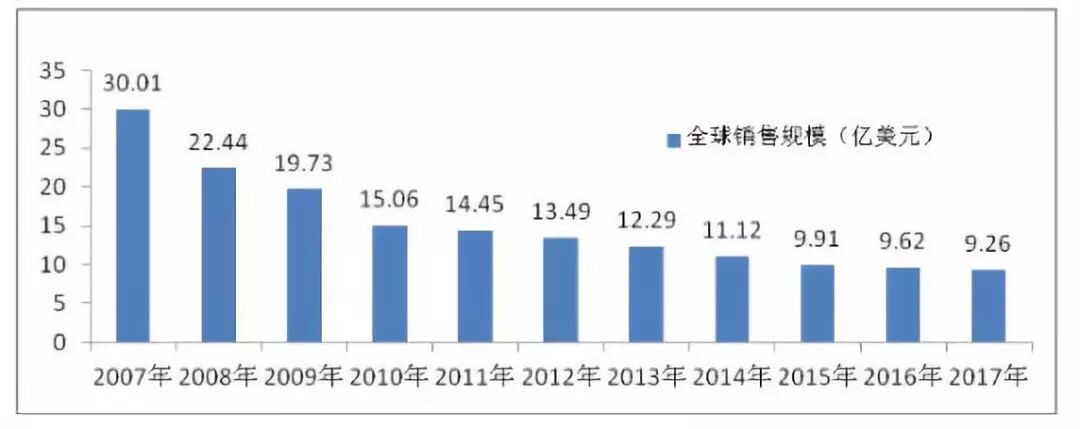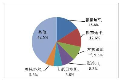 数据显示,2012年~2017年氨氯地平的年复合增长率为2.4%,呈平稳上升趋势,辉瑞垄断了85%左右的市场比重,而排名靠前的惠润赛科和上海海尼的市场份额均暂未能超过5%。
